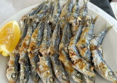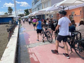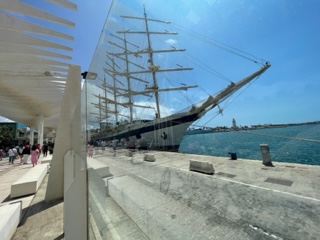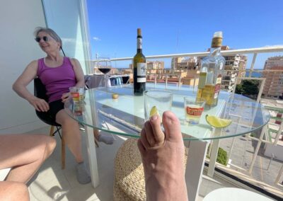 After a quick look around, we went back to unpack and relax which turned into an hour long siesta. After that we headed back out and found Roman ruins everywhere within walking distance, a very cool modern “Rambla” with many shops. We had dinner at a seaside restaurant , walked down the Rambla to the end, then started back stopping along the way at a grocery store for surprisingly inexpensive necessities (like beer for about 65 cents a bottle).