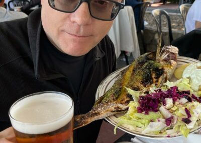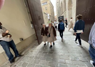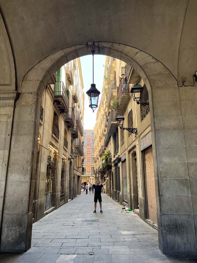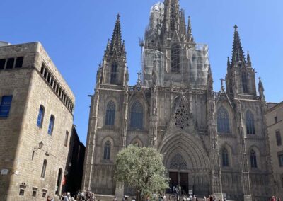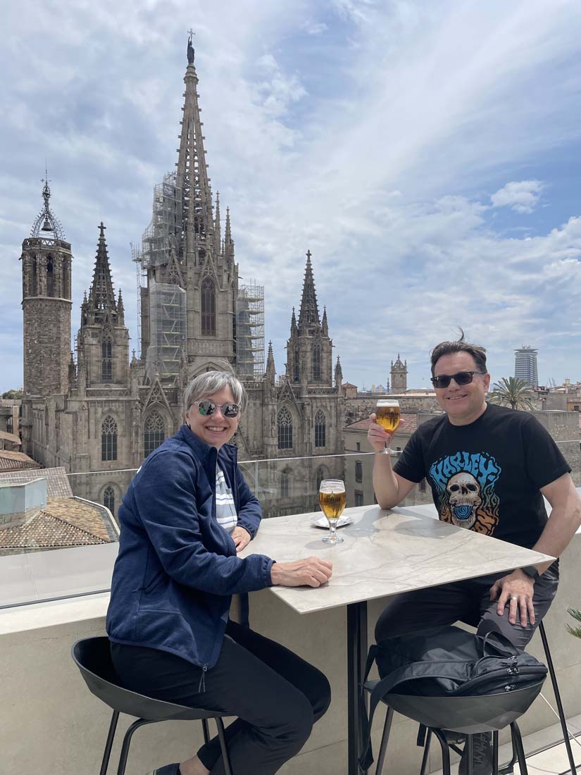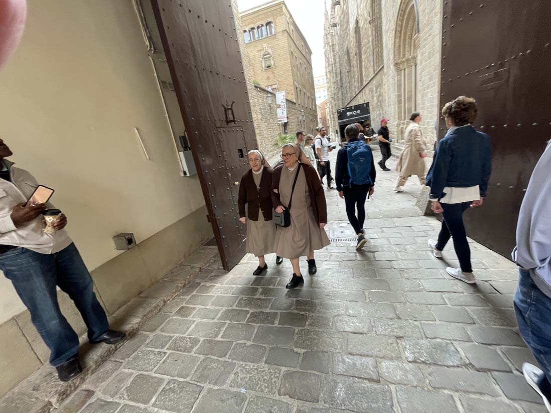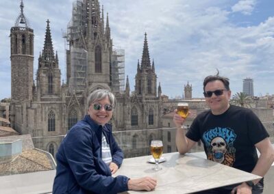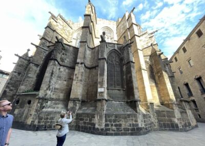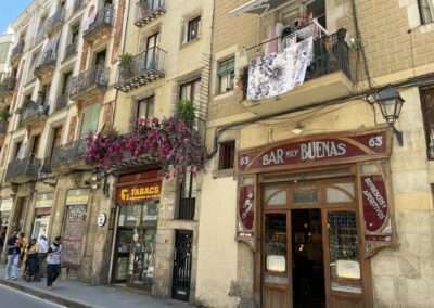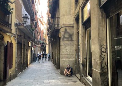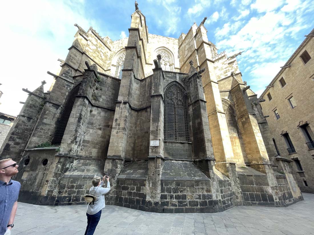 We arrived at our place and our host was waiting outside for us. Although we were almost 2 hours early for check-in, he told us it would just be 10 minutes for our place to be ready, helped us up the 3 flights of stairs (19th century building with no elevator) and let us put our stuff inside. Key in hand, we set out to explore and find a cold beer to quench the thirst we built ascending the hill. We are right next to the Cathedral and can hear the bells chime every quarter hour. The flat itself is small, but very well equipped, comfortable, cool, quiet. Everything Barcelona wasn’t.
