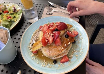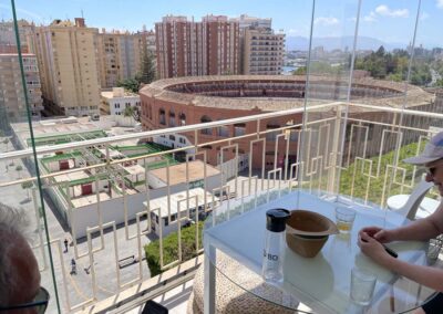 We came down off the mountain and had lunch at our swanky Spanish pad, After lunch we planned to head right over to Gibralfaro Castle, which is connected to the fortress and dates to the 14th century. We did eventually make it there, but all of us crashed hard after lunch for over an hour. It may have been the bottle of wine we had. Checking my Apple watch, it told me we had covered less than 5 km, but climbed 33 flights of stairs, so… yeah.