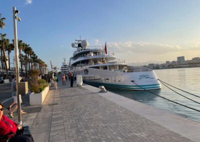 After the castle wwe walked to the port and checked out some very posh yachts that were moored there. I was afflicted with a very irritated eye, the source of which I still haven’t figured out for sure, but I think may have been sunblock seeping into my eyeball from sweat pouring down my face. Anyway, it hurt. A lot. Carla picked up an eyewash and we parted ways with Dan and Fran so I could go home and shower and get some drops in my eye. We ended the day eating rather disappointing take out at the kitchen table. My eye was already feeling better by then, though, so I was grateful for that.